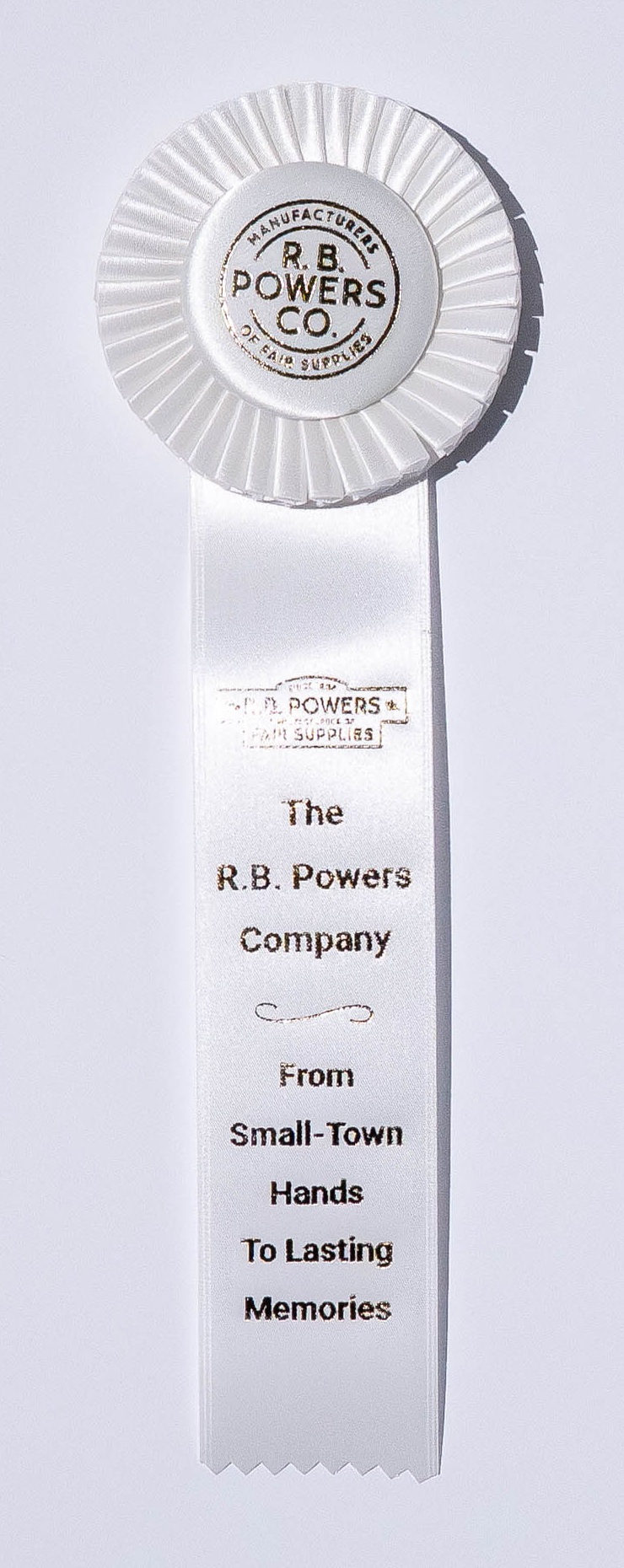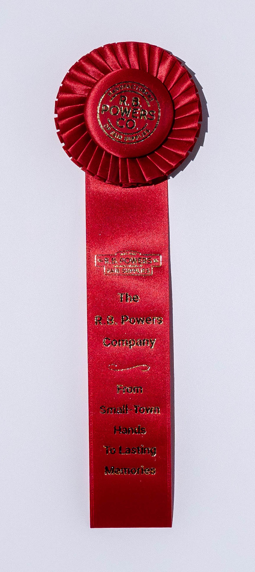 Custom rosette with 3.5″ rosette head and a single 2″ x 9″ streamer. The rosette head has a single row of quill surrounding the center button. Total length is 11.5 inches. Your logo (or stock logo of your choice) is printed in the center button.